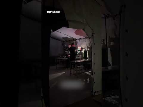 A child receives medical treatment by the light of a mobile phone at the Kuwaiti Field Hospital in Gaza’s Khan Younis due to insufficient facilities and equipment.