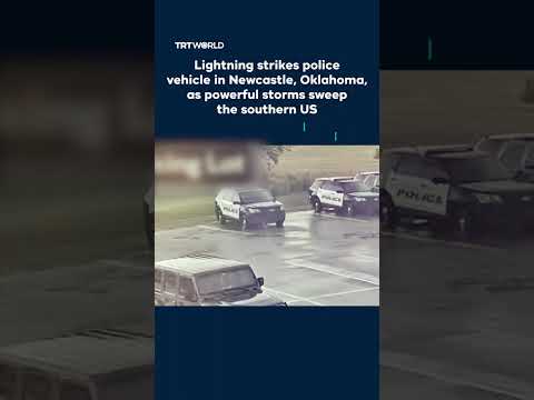 Surveillance footage shows a lightning strike on a patrol car in Oklahoma, US, as powerful storms swept through the southern US on May 19. No injuries were reported, according to the Newcastle Emergency Department.