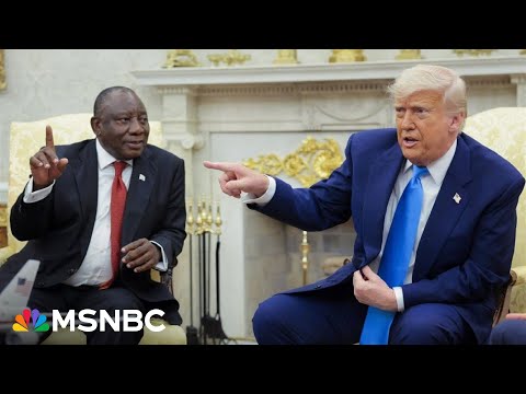 President Trump falsely claimed there is "white genocide" in South Africa while meeting with Cyril Ramaphosa, the country’s president, in the Oval Office. NBC News’ Julia Ainsley reports more. Politico White House and Foreign Affairs Correspondent Eli Stokols joins Katy Tur to react.