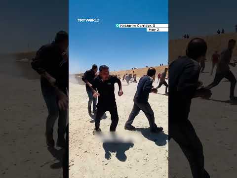 Israeli forces threw stun grenades at a group of Palestinians gathered at an aid distribution point in the Netzarim corridor area of Gaza, after they were called to receive aid from the ‘Gaza Humanitarian Foundation’ on May 29