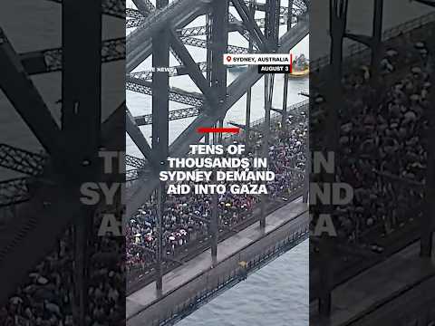 Tens of thousands marched across Sydney’s Harbour Bridge in the rain, advocating for peace and for humanitarian aid to be allowed into Gaza, as the enclaves starvation crisis deepens. The protest, supported by prominent figures like Julian Assange coincides with increasing international diplomatic pressure on Israel. #cnn #news #sydney #marchforhumanity