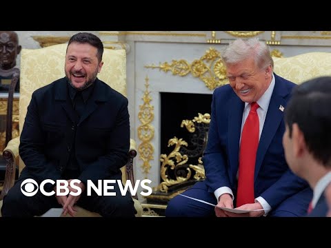 President Trump and Ukrainian President Volodymyr Zelenskyy appeared before cameras in the Oval Office Monday amid efforts to end Russia’s war in Ukraine. CBS News’ Nancy Cordes and Holly Williams report.