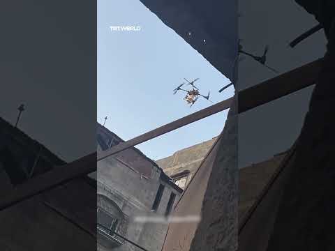 An Israeli remote-controlled quadcopter was filmed reportedly dropping explosive barrels on a building east of Gaza’s Sheikh Radwan neighbourhood