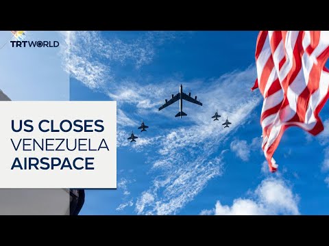 US President Donald Trump has told pilots and airlines to consider the airspace above and surrounding Venezuela to be closed in its entirety. It has raised fears of US military action against the Maduro government, which Trump claims is a narco-terrorist regime. Jon Brain reports.