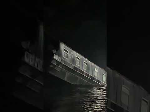 A dramatic moment was caught on camera when a narrowboat tipped into a huge sinkhole after an embankment collapsed along the Shropshire Union Canal in Whitchurch, England. Four boats were left beached, 15 people were rescued, and large amounts of water flooded nearby land.