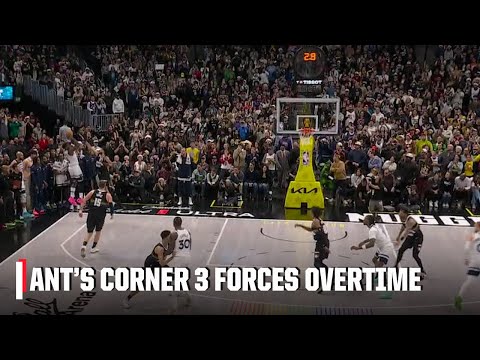 Share Facebook Twitter LinkedIn Pinterest Email Anthony Edwards ties the game at 115-115 to cap a 16-2 run and force overtime between the Minnesota Timberwolves and Denver Nuggets in the Christmas night finale. ✔️ Subscribe to ESPN Unlimited: https://plus.espn.com/ #ESPN #NBA