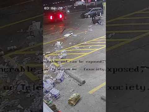 Insane security-camera footage shows the vehicle barreling into the site’s parking lot around 4 a.m. and two men, dressed with black gloves and masks, leaping out of the car.