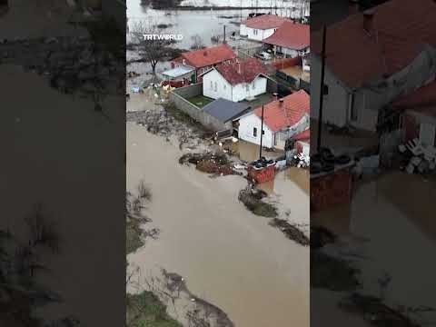 Drone video shows the scale of flooding in Kosovo, with large areas submerged following days of heavy rain.