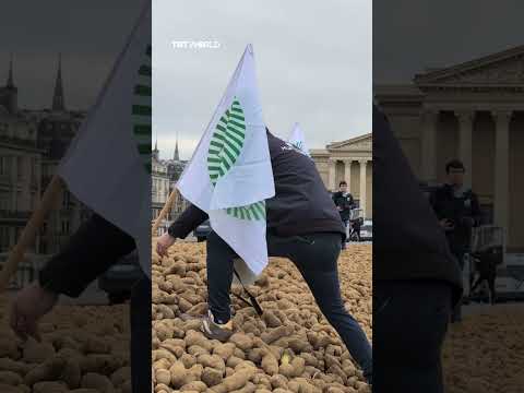 French farmers dumped about 30 tonnes of potatoes outside France’s National Assembly in a symbolic protest against the proposed European Union–MERCOSUR trade deal.