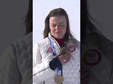 A moment Breezy Johnson will remember forever. #NBCSports #WinterOlympics #TeamUSA #BreezyJohnson #AlpineSkiing