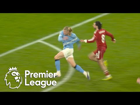 Rayan Cherki’s goal is disallowed for both Erling Haaland’s foul on Dominik Szoboszlai, and Szoboszlai’s foul on Haaland which VAR deemed to be a denial of an obvious goal-scoring opportunity. #NBCSports #PremierLeague #Liverpool #ManchesterCity
