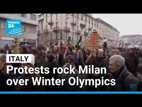 Italian police fired tear gas and a water cannon at dozens of protesters who threw firecrackers and tried to access a highway near a Winter Olympics venue on Saturday. The brief confrontation came at the end of a peaceful march by thousands against the environmental impact of the Games and the presence of US agents in Italy. Story by Antoine Fenaux & Daniel Quinlan.