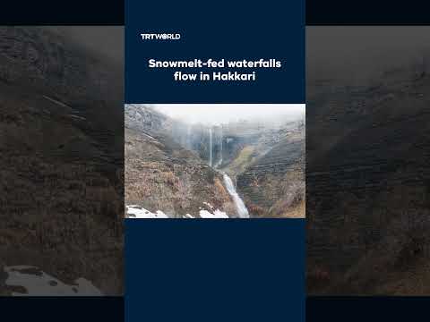 Waterfalls flowing once more after the winter melt, with a soft layer of fog resting over the higher elevations of Hakkari’s Derecik district of Türkiye, an area now stabilised and cleared of terrorist activity following security operations, on February 8.