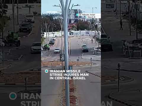 Share Facebook Twitter LinkedIn Pinterest Email CCTV footage shows an Iranian missile striking Or Yehuda, central Israel, injuring a man walking by a road.