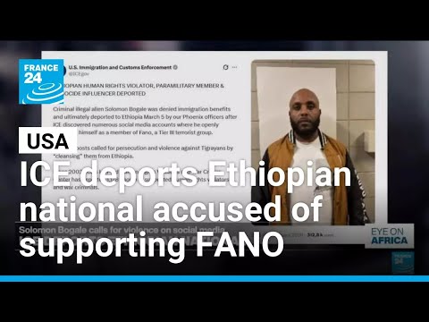 US authorities have deported an Ethiopian national after immigration investigators determined that his online activity supported the FANO, an armed militia fighting against Ethiopia’s government forces. US Immigration and Customs Enforcement, ICE, said Solomon Bogale posted messages calling for violence against Tigrayans and advocating ethnic persecution. Details by FRANCE 24 correspondent in Addis Ababa, Tom Canetti.