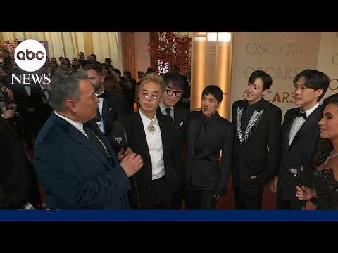 The Saja Boys, from Netflix’s KPop Demon Hunters, arrived at the Dolby Theatre ahead of the 2026 Oscars.