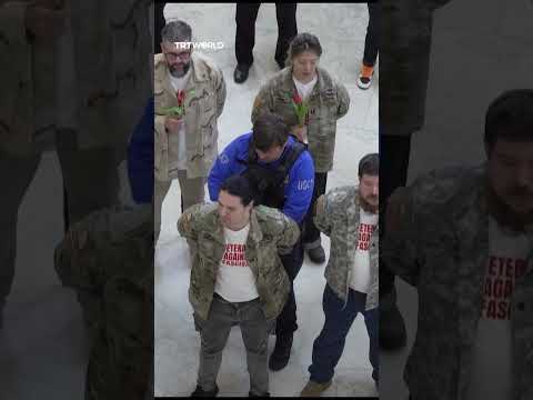 Dozens of American veterans and military family members were detained after they started protesting the Iran war inside a Congressional office building in Washington, DC.